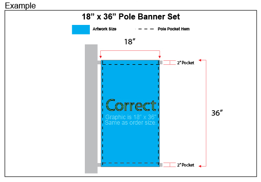 A: Your submitted graphic should fit the exact dimensions of the print you ordered. There are 2” pole pockets at the top and bottom of this graphic. The seams from the hemmed pole pocket will be visible 2” from the top and bottom of the graphic.